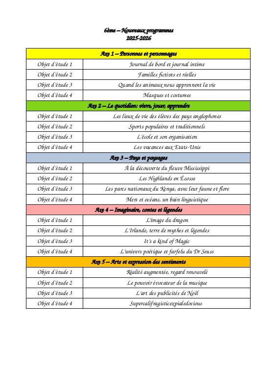 Nouveaux Programmes 6Ème 25 26